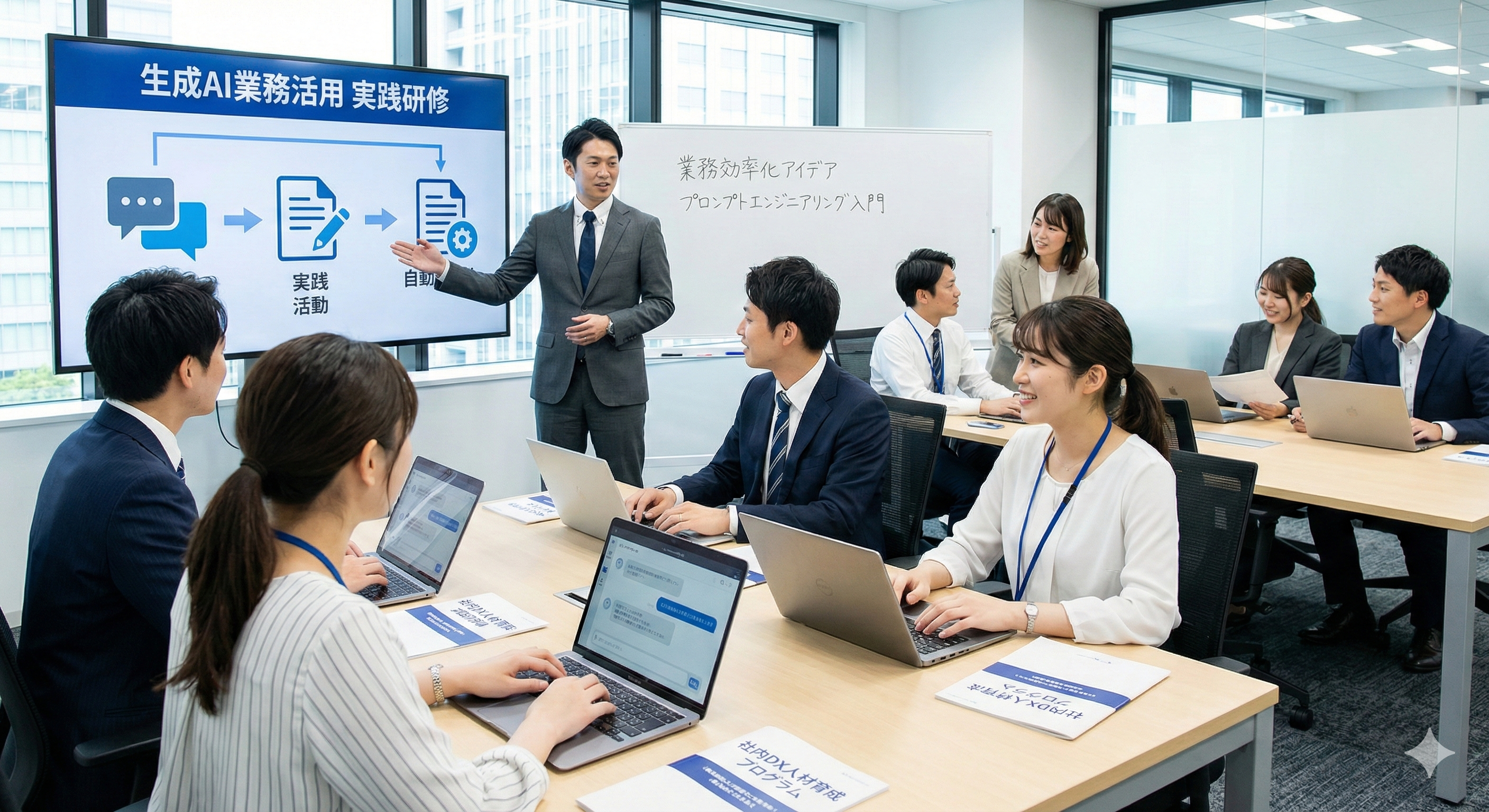 「生成AIを業務でどう使うか?」の実践研修や、社内DX人材の育成プログラムを設計・実施します。