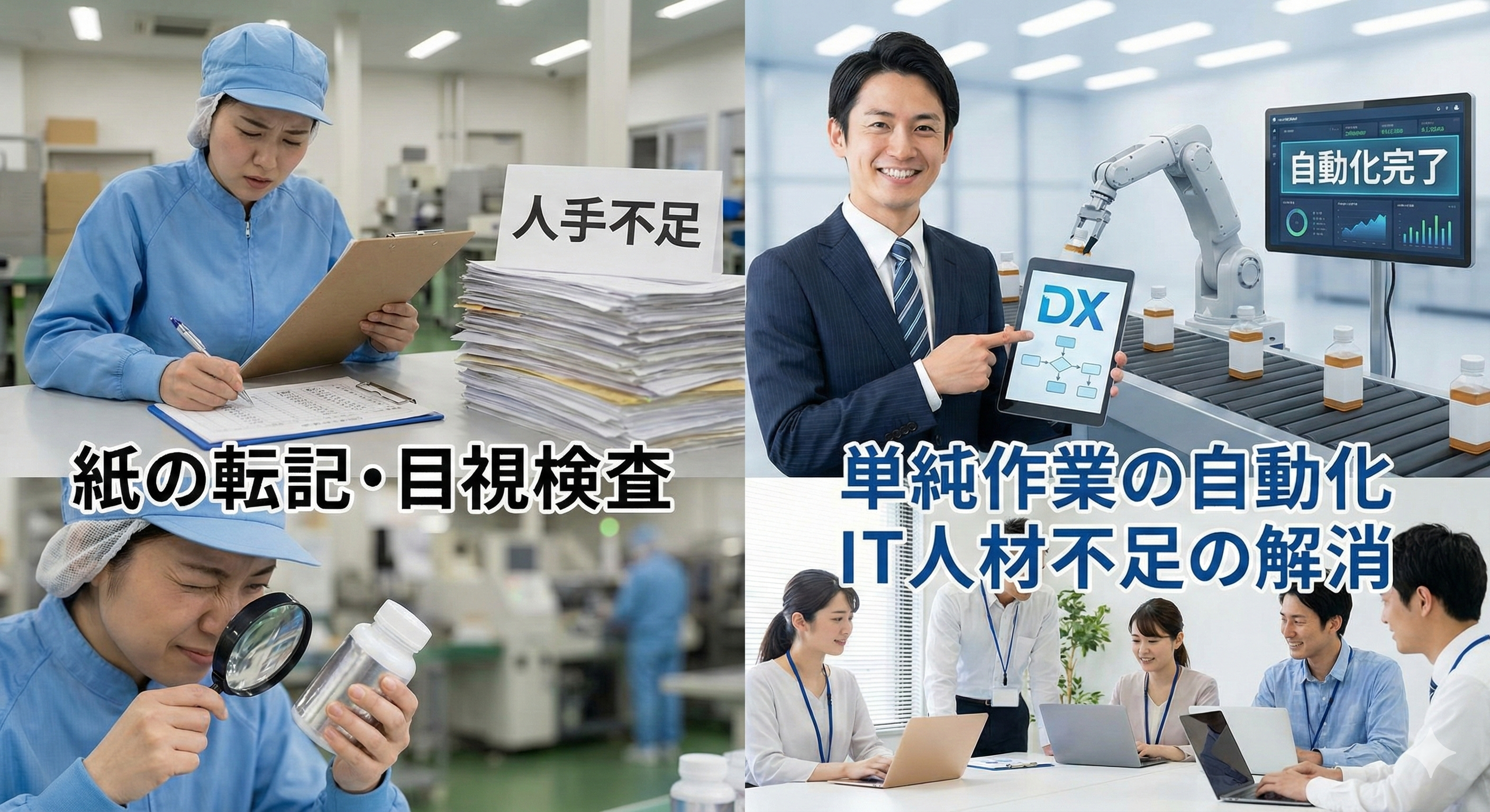 「紙の転記作業や目視検査など、単純作業を自動化して人手不足を解消したい」「社内にITに詳しい人材がおらず、DXが進まない」
